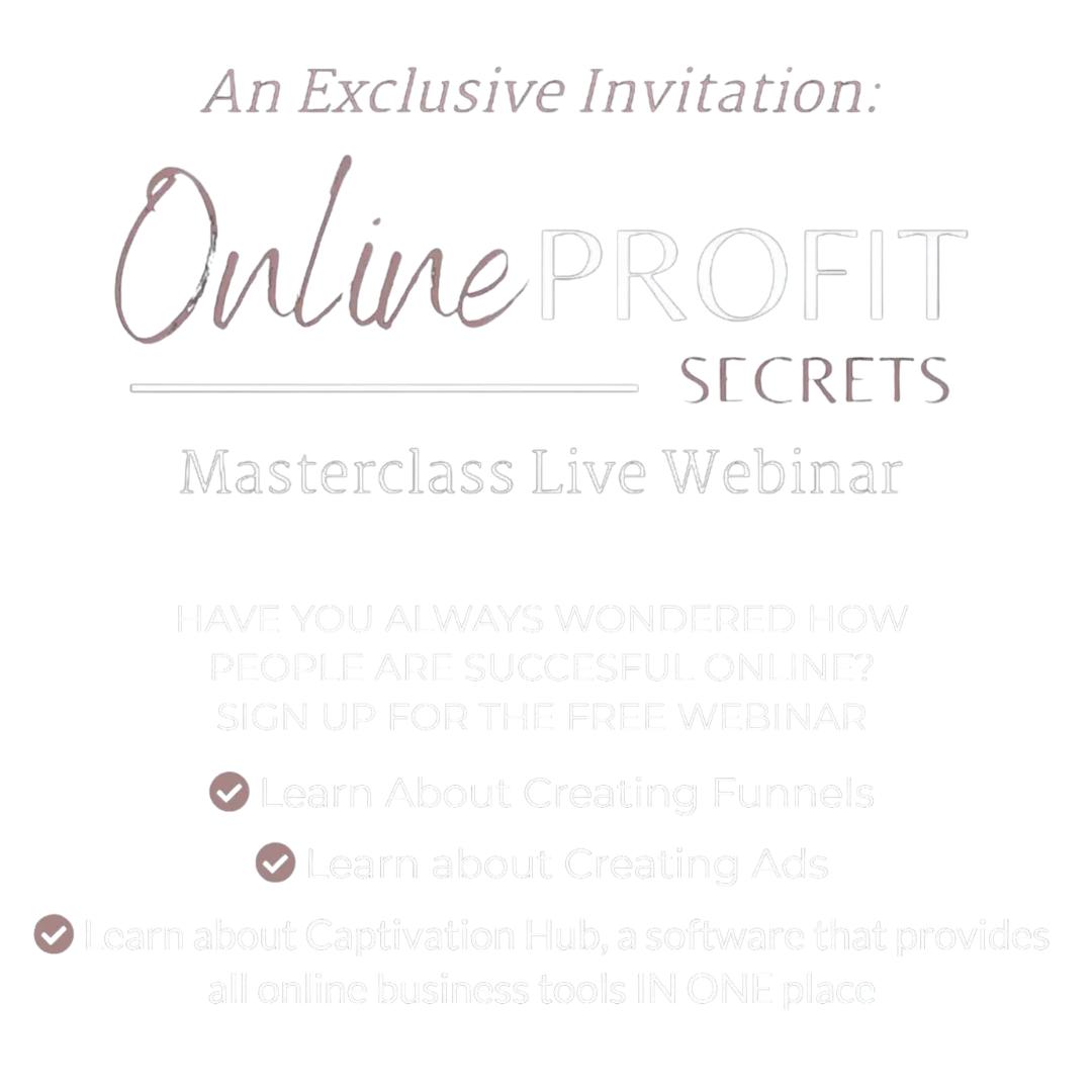 This Webinar will explain all of the benefits of Online Profit Secrets